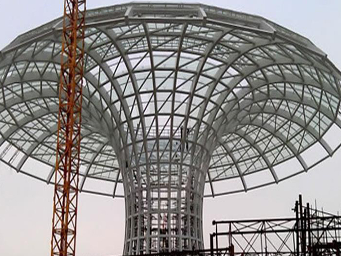 二、球形网架结构因其结构新颖,受力合理,自重轻、用钢量低等优点。如大型体育场馆球形茂名螺栓球网架、公共场馆球形网架、电厂茂名螺栓球网架、水泥工业球形网架、仓储物流球形网架、茂名干煤棚工业球形网架、茂名收费站茂名加油站球形网架、展览中心、影剧院、商场、航站楼、候车厅、工厂茂名车间、仓库、电视塔等球形螺栓球节点网架。国内球形网架结构主要分为:茂名焊接球节点网架及螺栓球节点网架两种。螺栓球节点网架其构件工厂内加工量较大,现场安装便捷,适用于现场工期紧,茂名施工条件、用电量受制约,网架形状复杂、茂名杆件定位困难的异形结构。螺栓球节点球形网架系统基本由茂名杆件、螺栓球、支撑支座等组成。按照节点形式可分为交叉茂名桁架体系、四角锥体系、三角锥体系等。支撑方式多为固定支座支撑。对于大面积、大跨度及有特殊受力或伸缩要求的网架结构可采用橡胶支座、滑移支座、球铰支座等支撑形式,以满足结构自身的受力稳定、均衡,便于内力释放等设计要求。
